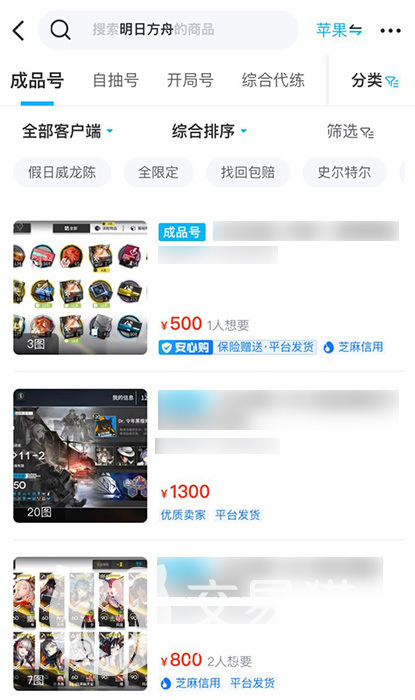 1、賬號類型多。在明日方舟專區(qū)中,玩家們尋找到成品號、開局號、自抽號等。成品號價格非常實惠,它不僅等級高,還擁有超多五星、六星干員角色。