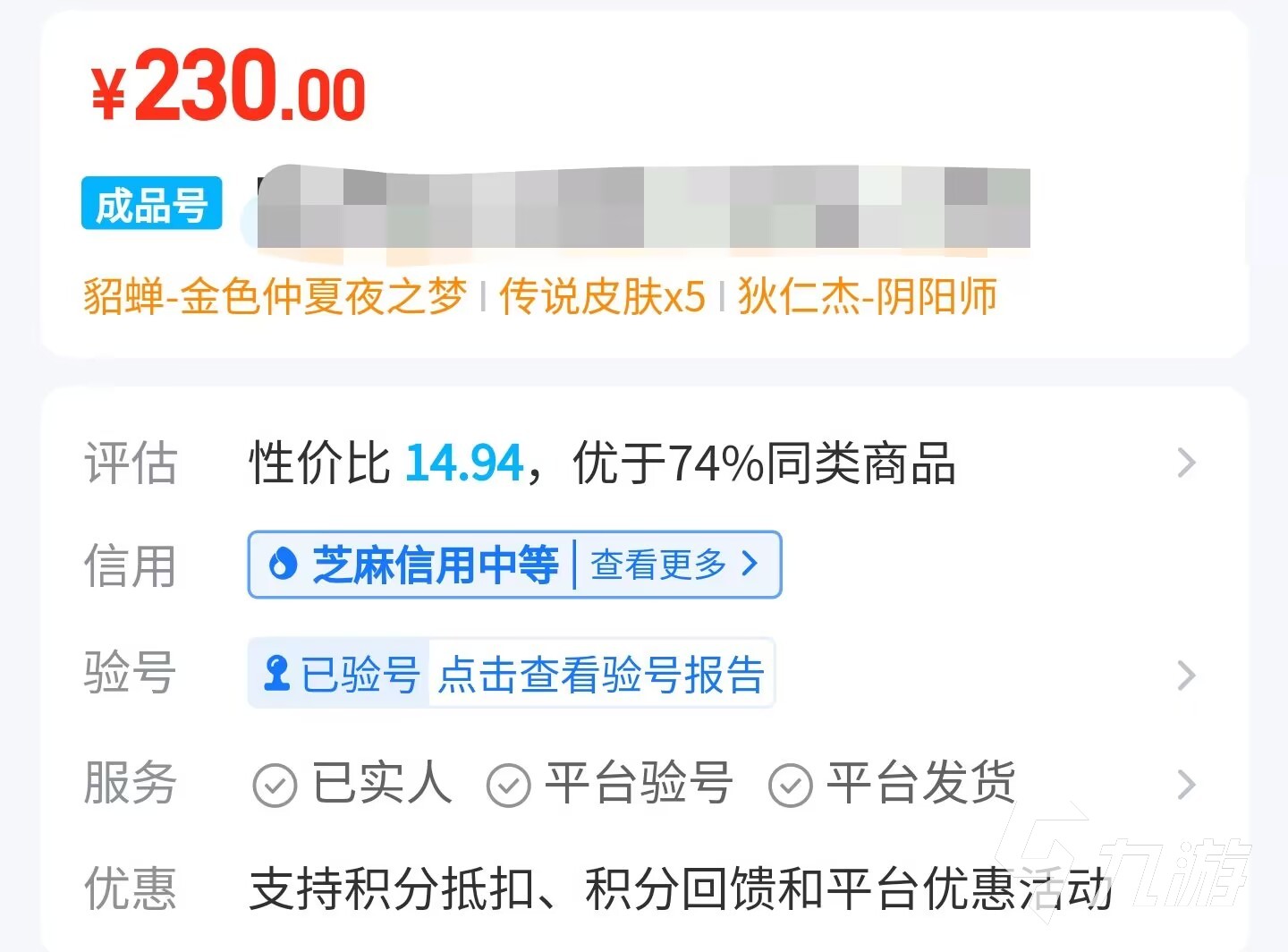 想要更靠譜的買王者小號(hào)選交易貓的一大理由其實(shí)就是有安心購(gòu)服務(wù),即使賣家找回也是會(huì)賠付給大家相應(yīng)的貨款,平臺(tái)客服負(fù)責(zé)發(fā)貨更能夠把即將要購(gòu)買賬號(hào)的綁定關(guān)系給大家在驗(yàn)號(hào)報(bào)告中摸清,這樣就不用擔(dān)心被找回的問(wèn)題。王者專區(qū)內(nèi)的賬號(hào)大多數(shù)都有一個(gè)性價(jià)比評(píng)分的10~20分之間的都說(shuō)明在同類賬號(hào)中是比較值得的,大家可以根據(jù)這個(gè)評(píng)分來(lái)判定賬號(hào)的性價(jià)比如何。