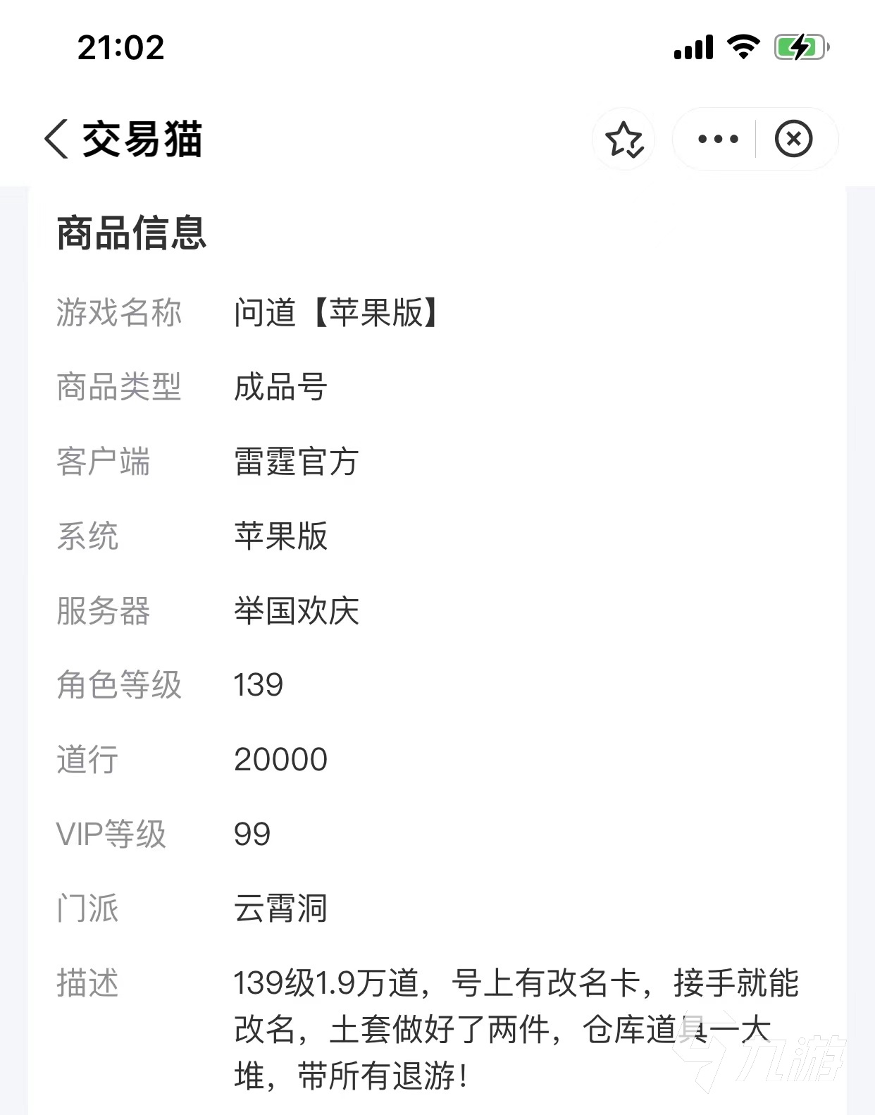 以上就是小編對于問道手游賬號交易平臺哪個安全這一問題的具體解答,對于想要快速入坑和賣號回血的小伙伴們可以嘗試使用交易貓,在安全的基礎(chǔ)上買賣到自己心儀的賬號。