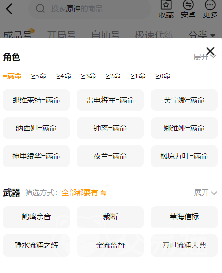 在交易貓上,買賣原神帳號非常方便,因為玩家可以根據(jù)自己的喜好選購不同類型的帳號。例如有的買家需要含有某個五星角色的帳號。這時就可以快速定位到相關(guān)商品。這樣即可買到稱心如意的號,然后賣家也能根據(jù)某個角色作為賣點迅速賣出,并且價格更香。