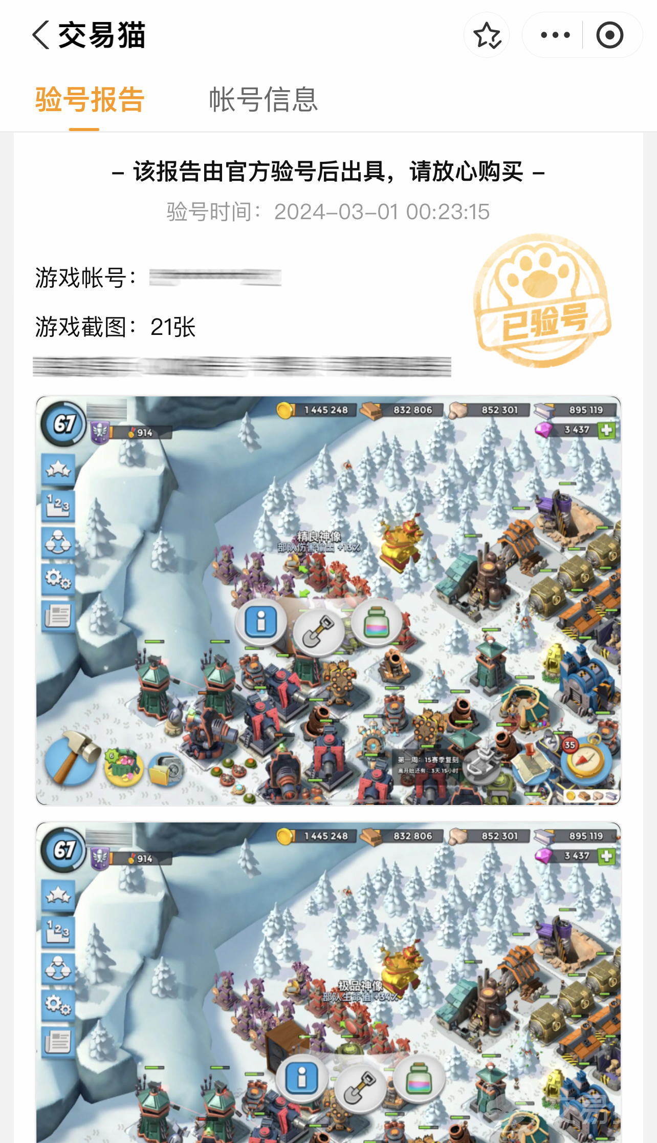有的賣家想要讓買家們更加清楚地了解自己的賬號(hào)有哪些道具以及英雄,這時(shí)候即可委托交易貓代替賣家們驗(yàn)證這個(gè)號(hào)上面一共有哪些東西,包括等級、道具以及裝備。然后買家們也可以仔細(xì)地查驗(yàn)一下這份報(bào)告,這樣自己就能更放心地入手,然后自己驗(yàn)號(hào)時(shí)也不用費(fèi)勁閱覽。