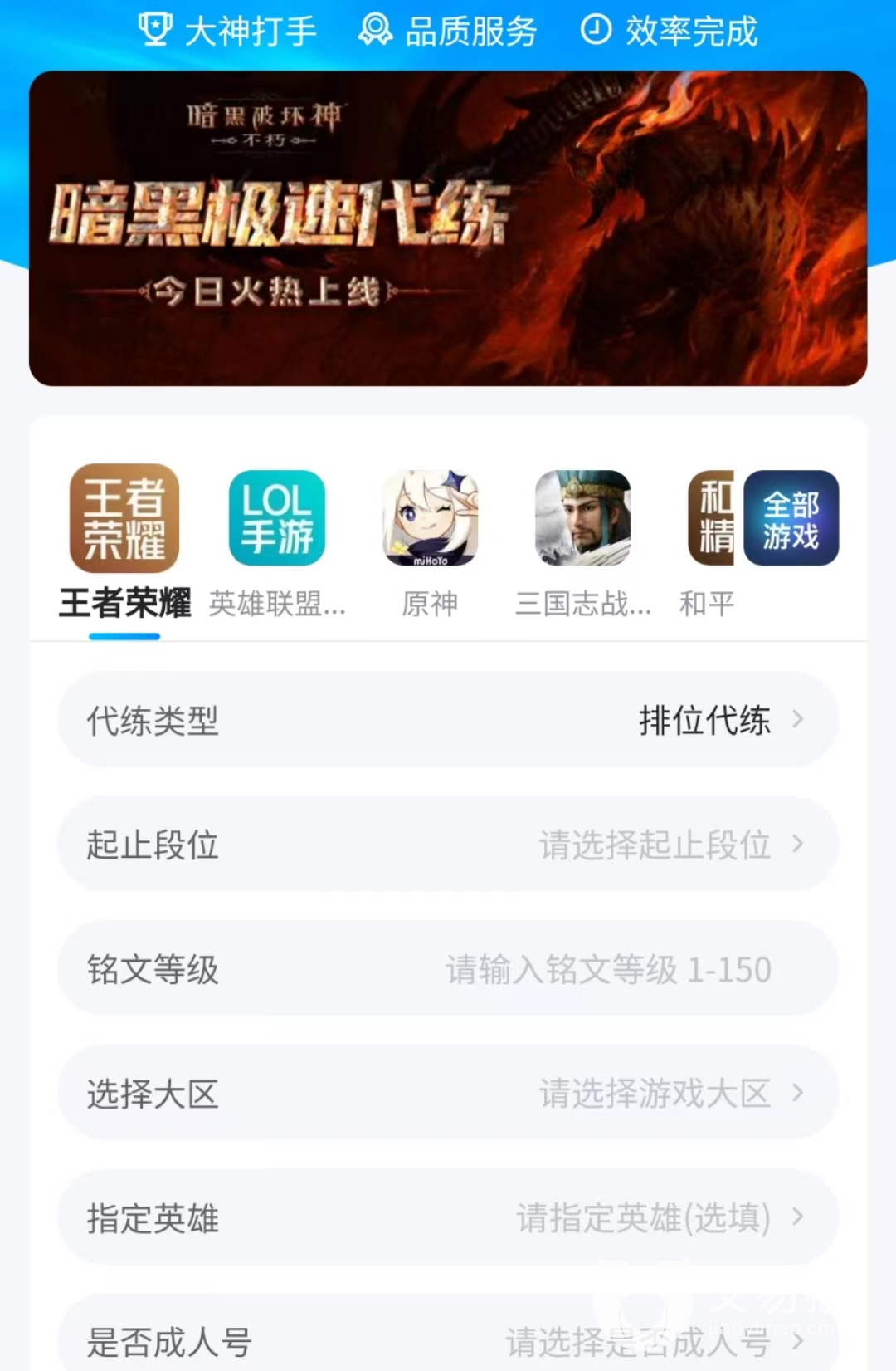 除了賬號(hào)跟道具外,交易貓上還有專門的代練板塊,那么小伙伴如果想要做代練的話可以在上面大展拳腳了。