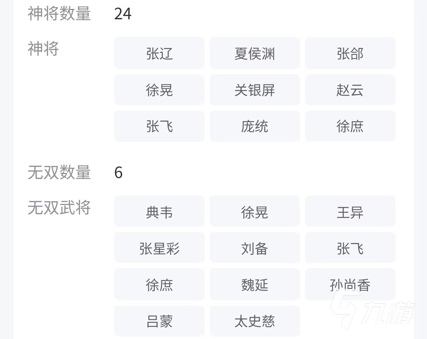 神將武將數(shù)量以及參數(shù)