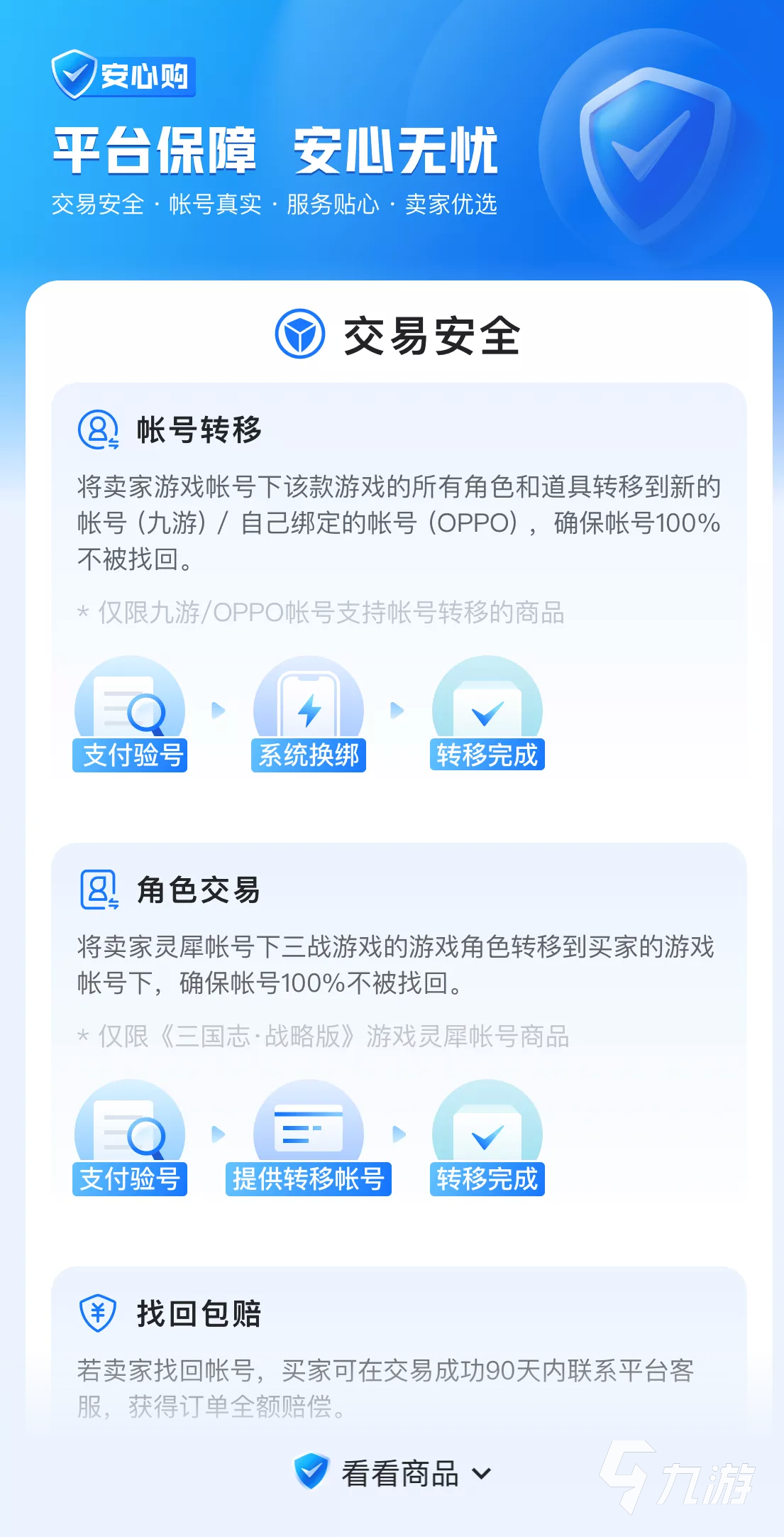 2、交易貓上服務(wù)好,賣家不用愁。一個(gè)平臺(tái)的服務(wù)越到位,那么賣家所要提供的服務(wù)也就越少,賣家會(huì)很省心。在交易貓上有些商品會(huì)顯示“安心購”?!鞍残馁彙笔墙灰棕埳现鞔虻姆?wù)項(xiàng)目之一。這項(xiàng)服務(wù)除了提供平臺(tái)發(fā)貨服務(wù),還有平臺(tái)驗(yàn)號(hào)服務(wù)等等。這些服務(wù)對(duì)于買賣雙方來說都是很不錯(cuò)的服務(wù),所以如果在交易貓上賣賬號(hào)的話,優(yōu)選這項(xiàng)服務(wù)哦,但是具體現(xiàn)在還是要看賣家自己。