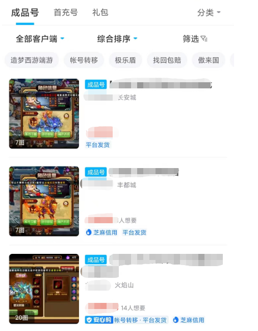 1、不管是在買任何東西的時候,買家肯定都喜歡精挑細選,交易貓里有關(guān)造夢西游4成品號的資源特別多,不會出現(xiàn)看兩頁就沒了的情況,賬號數(shù)量多了留給買家的選擇就多,要是覺得成品號價格比較貴的話,也可以購買個首充號或者開局號玩玩,這類賬號的價格會比較低,也可以用于試試水。