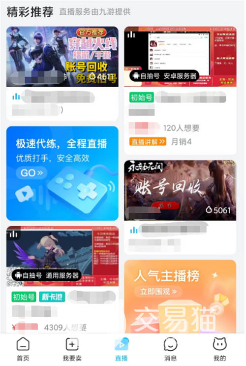直播也是平臺(tái)里面的特色功能之一,算得上是一次全新的嘗試,但是根據(jù)目前的效果來(lái)看反響是非常好的,玩家可以去進(jìn)入到對(duì)應(yīng)游戲的直播間中,里面除了買賣賬號(hào),還有道具以及代練等多種,玩家到時(shí)候可以選擇對(duì)應(yīng)的直播房間進(jìn)入,不僅溝通起來(lái)更加的便捷,交易的時(shí)候也能放心許多。