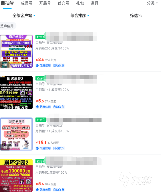 3、附屬服務(wù)多,交易滿意度高。在交易貓平臺(tái)上面,有專屬崩壞學(xué)園2的專區(qū),玩家可以挑選專區(qū)的各種游戲服務(wù),快速找到開局號(hào)、成品號(hào)、自抽號(hào)以及各種禮包道具等,支持在線選擇游戲區(qū)服,方便各位玩家找到自己想購(gòu)買的賬號(hào),省時(shí)又省力。