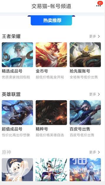 對(duì)于各種游戲大神而言,培養(yǎng)一個(gè)高等級(jí)的游戲賬號(hào)是不那么復(fù)雜的。不過(guò),如果想要脫坑一款游戲的時(shí)候,賬號(hào)應(yīng)該如何快速的進(jìn)行處理?一個(gè)靠譜的交易平臺(tái)又應(yīng)該如何去尋找?今天,小編將為大家推薦一款交易貓app,各位可以進(jìn)入到該軟件內(nèi)容了解各種游戲的賬號(hào)交易信息,同時(shí)也支持大家發(fā)布自己的商品。