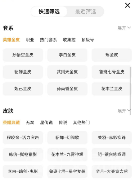 因?yàn)榻灰棕埖纳唐贩浅6?,所以你也可以通過(guò)搜索王者榮耀的相關(guān)商品來(lái)和自己的賬號(hào)進(jìn)行對(duì)比,看看和自己賬號(hào)內(nèi)容相似的商品的售價(jià)是多少,以次也能得出結(jié)論,通過(guò)篩選功能可以幫你精確查找哦。
