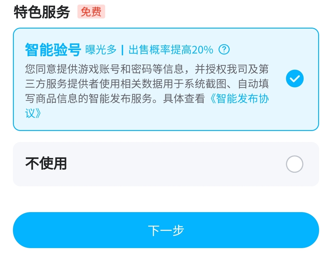 大家還可以在發(fā)布前勾選智能驗號服務(wù),或是為商品投個保,這樣能使商品獲得個良好曝光效果,大大縮短賣出去的時間,提升出售概率。如果你芝麻信用足夠好的話,平臺還會給你安心購認證,你出售的商品會擁有更多服務(wù)保障,這些保障都是作用于買家的,這能讓你的商品相比其他商品來說,更使人信任。