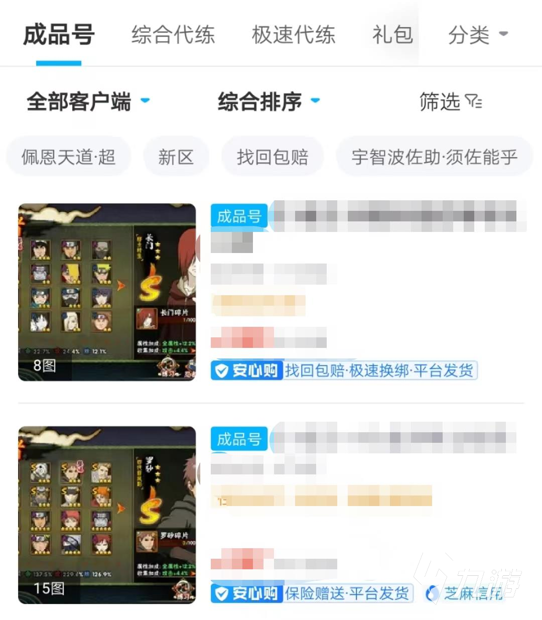 想要買號的小伙伴一個是擔(dān)心價格問題,還有一個擔(dān)心安全問題,想買到價格實惠又安全放心的賬號,大家可以來交易貓上面看看,里面有很多的火影忍者賬號出售,不管是成品號還是大神號,你需要的賬號類型應(yīng)有盡有,任君選購。