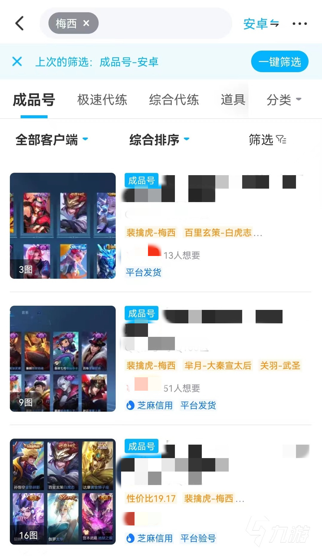 在估價(jià)完成后直接就能上架出售,比其他途徑上架還要簡(jiǎn)單,而且這一項(xiàng)服務(wù)完全免費(fèi),即使不想賣賬號(hào)也可以先來(lái)估計(jì)一下大致的價(jià)格,做到心中有數(shù)。此外第2項(xiàng)是通過參考平臺(tái)中其他擁有梅西元素皮膚賬號(hào)的價(jià)格,然后再根據(jù)自己實(shí)際情況進(jìn)行手動(dòng)判定。想要找出這一類商品也非常簡(jiǎn)單,在王者榮耀專區(qū)里是只要輸入梅西就可以搜索出來(lái),目前皮膚中最關(guān)鍵的就是裴擒虎梅西主題皮膚,當(dāng)然還有其他道具,多參考一些,就能得到一個(gè)比較可靠的價(jià)格。