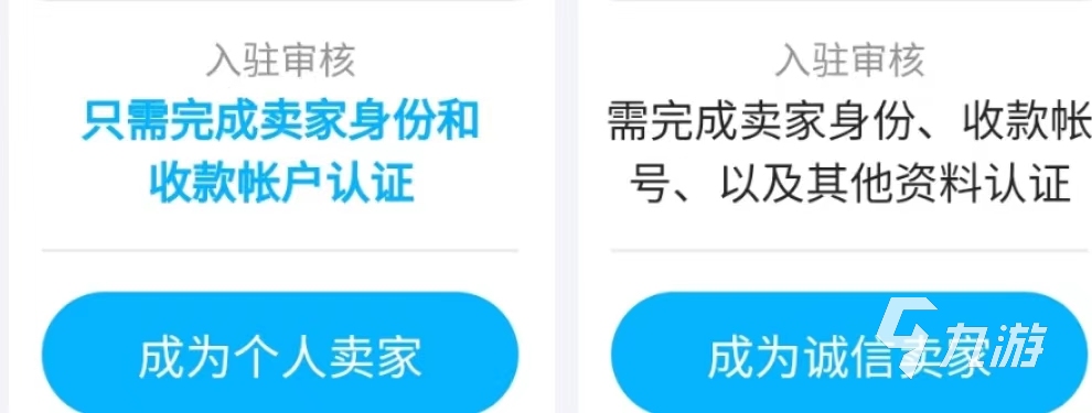 想要在交易貓上出售賬號(hào)是非常簡(jiǎn)單的,首次出售的小伙伴可以選擇成為個(gè)人賣(mài)家還是誠(chéng)信賣(mài)家,個(gè)人賣(mài)家支持的是寄售模式,只要驗(yàn)證收款賬戶和賣(mài)家身份就可以了。而如果選擇成為誠(chéng)信賣(mài)家的話則可以享受更多元化的服務(wù),并且能夠出售平臺(tái)全品類的商品。