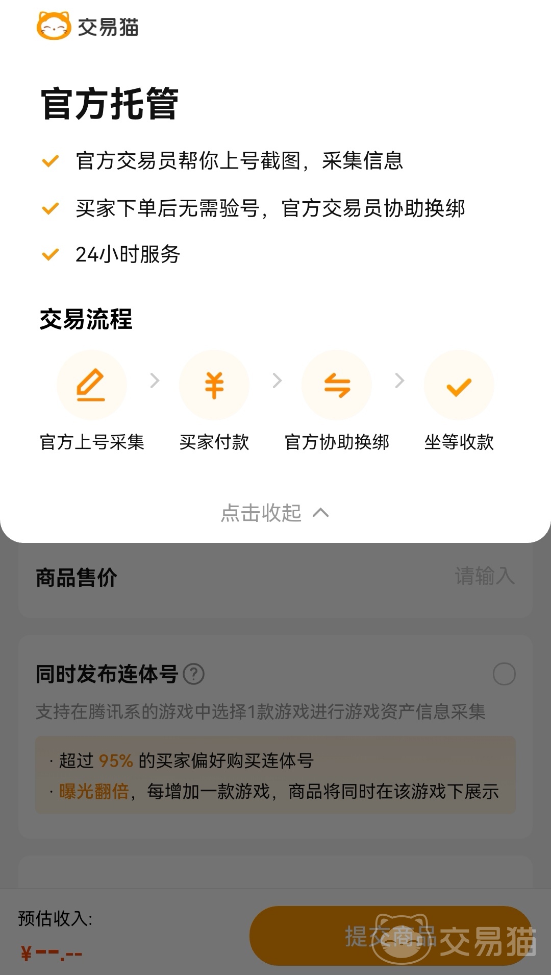 選擇交易貓平臺出售你的游戲賬號真的是大家的正確選擇,通過申請可以獲得賣家身份,點(diǎn)擊賣賬號找到專區(qū)可以把賬號信息編輯上架了,此項操作大家會發(fā)現(xiàn)交易貓?zhí)峁┝斯俜酵泄?,不需要大家自己去統(tǒng)計游戲當(dāng)中的皮膚和英雄角色等,只需把你的賬號和密碼提供給平臺,就會有專業(yè)的人員為大家進(jìn)行統(tǒng)計,如果有買家購買的話也是由交易員幫助換綁和解綁的,對于賣家方的人來說真的就是超級方便,官方托管還有一個好處就是夠自動的生成商品鏈接和封面,也都是根據(jù)大家游戲賬號當(dāng)中的真實數(shù)據(jù)來設(shè)計的。