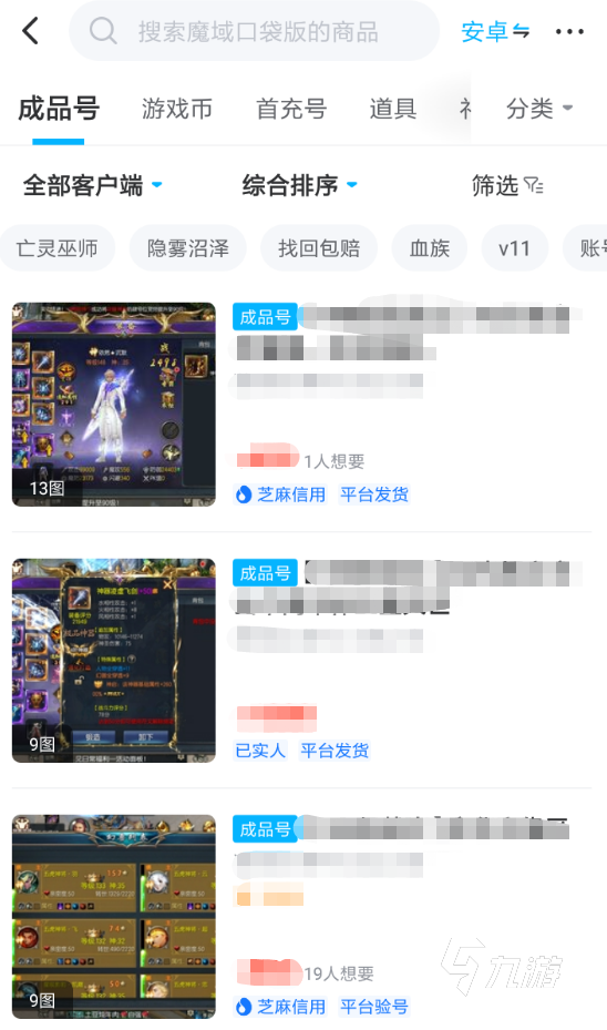 2、單獨(dú)的魔域口袋版專區(qū)下,將帶來(lái)豐富的商品內(nèi)容。玩家在這里可以挑選自己感興趣的商品進(jìn)行查看,詳情頁(yè)和截圖都將提供豐富的內(nèi)容讓大家來(lái)判斷該游戲號(hào)的整體性價(jià)比。各位也可以根據(jù)自己的預(yù)算,來(lái)了解不同游戲號(hào)的價(jià)格是否符合自己的要求。
