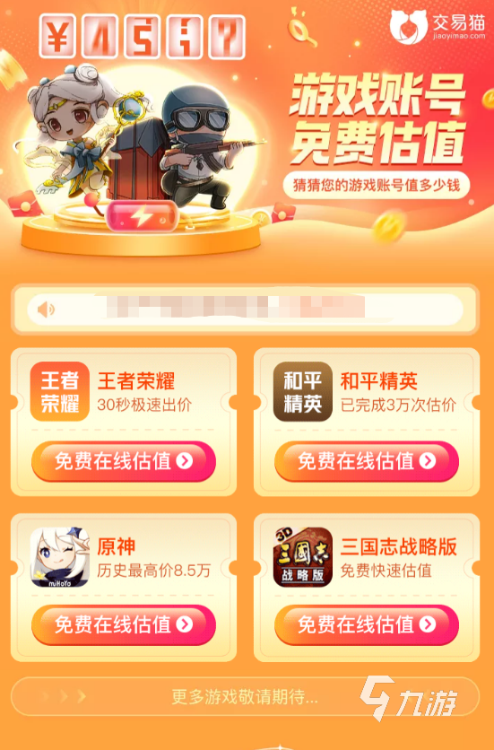 3、當(dāng)然,如果玩家也打算將自己的游戲號(hào)進(jìn)行出售的話,也可以在交易貓app當(dāng)中利用估值功能來(lái)檢測(cè)賬號(hào)真實(shí)的價(jià)格。這樣可以有效避免胡亂出價(jià)的情況發(fā)生,提高大家的商品成交率。同時(shí),也可以讓不了解行情的玩家,快速得到一個(gè)真實(shí)的參考數(shù)據(jù)。