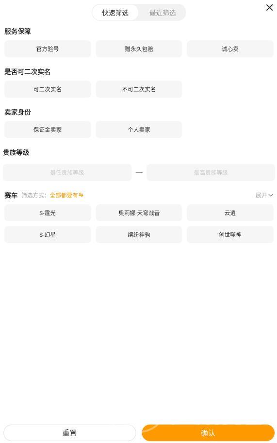 應(yīng)用中內(nèi)置的篩選系統(tǒng),可以幫你更快更精準(zhǔn)地找到想要的賬號(hào),打開篩選列表后,你把對(duì)應(yīng)的選項(xiàng)勾選好,接著一鍵搜索即可發(fā)現(xiàn)大批符合要求的賬號(hào),屆時(shí)再?gòu)闹兄饌€(gè)對(duì)比挑選,就能發(fā)現(xiàn)你要的號(hào)了,要是運(yùn)氣夠好,還可找到性價(jià)比超高的棄坑號(hào)。