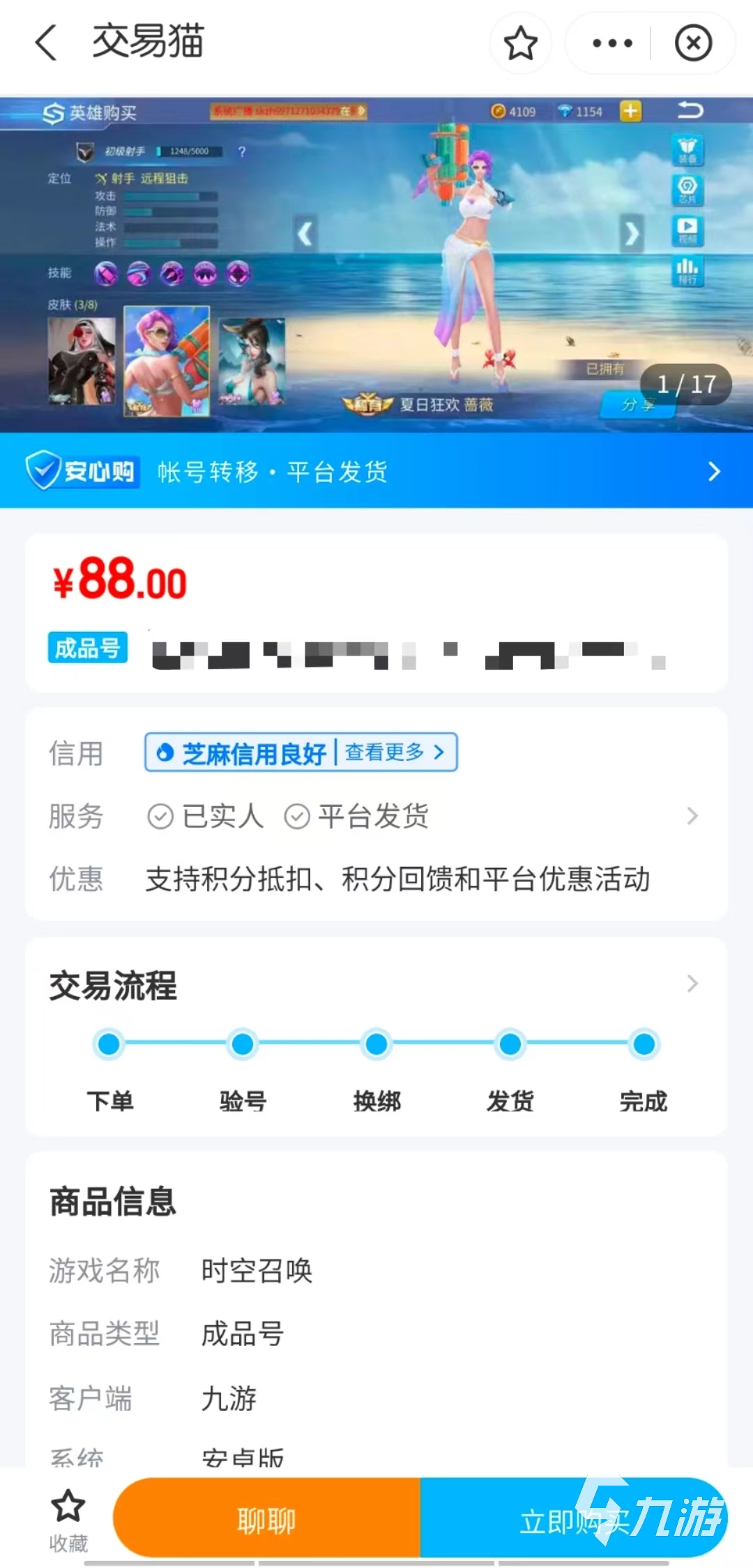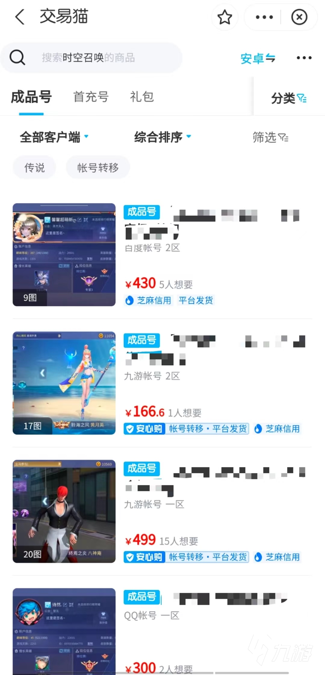 以上就是小編收集到時空召喚賬號交易靠譜嗎的全部信息,在大家選擇賬號的時候,可以考慮挑選帶有安心購和找回包賠標志的賬號,因為安心購和找回包賠進針對部分商品,這些商品的交易安全程度非常高。