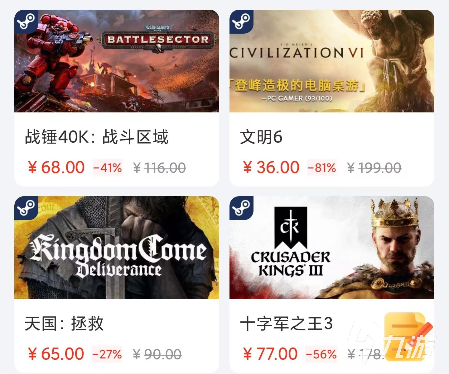 現(xiàn)在玩家們點(diǎn)擊上方鏈接下載交易貓還能趕上Steam平臺(tái)的史低折扣任意選,這是為交易貓平臺(tái)獨(dú)家開放的熱門游戲低價(jià)售賣渠道,熱門的艾爾登法環(huán)原價(jià)298,但在交易貓平臺(tái)內(nèi)僅需200元就可以入手,其余的熱門游戲只狼、胡鬧廚房、鬼泣和荒野大鏢客2都可以以低至6折來入手到自己的國區(qū)賬號(hào)。