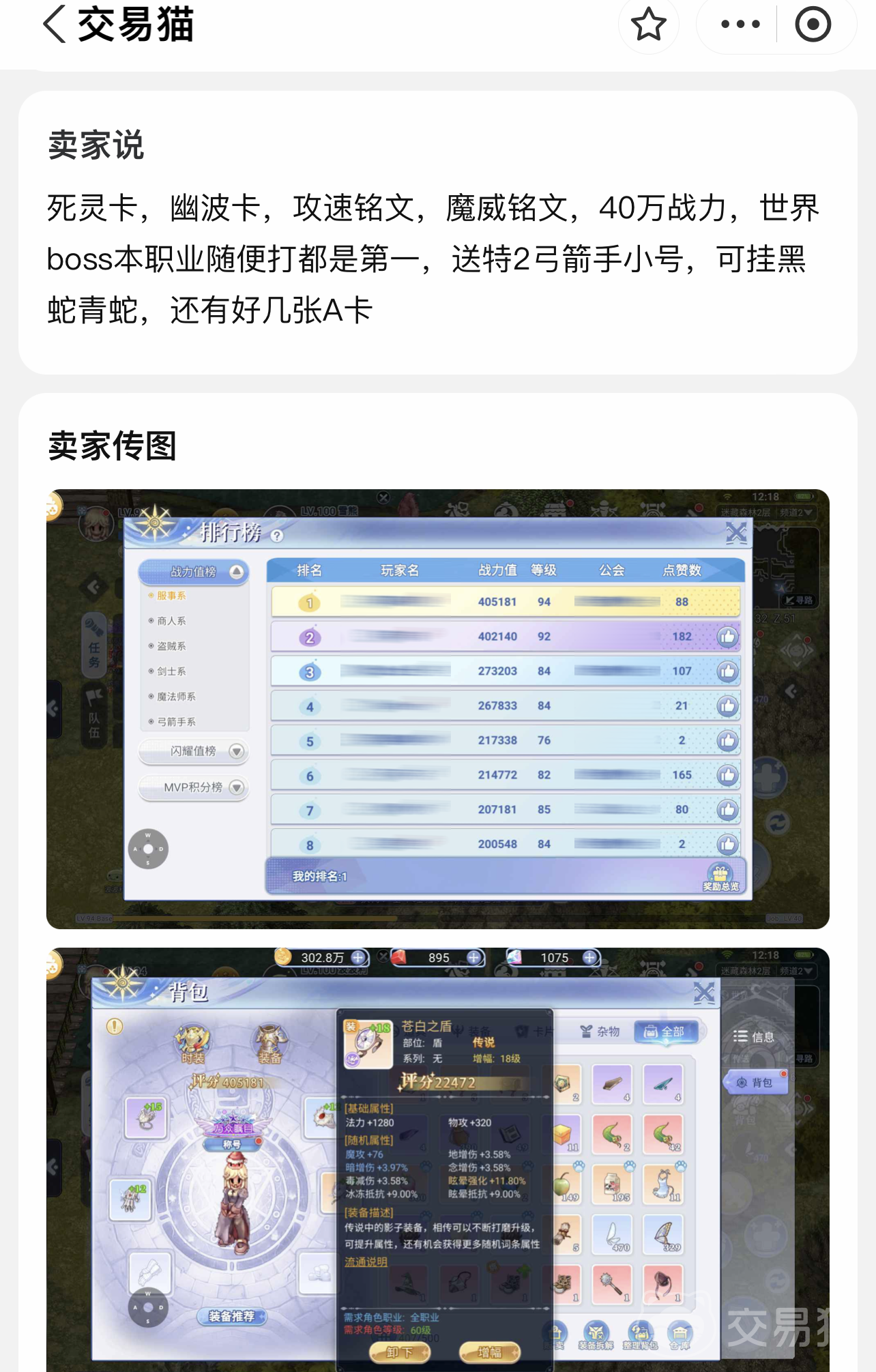該游戲雖然職業(yè)豐富,并且還能轉(zhuǎn)職組隊(duì)刷boss,但是后期開(kāi)發(fā)難度大,所以有些老玩家心有余力不足,而新玩家也懶得從頭肝號(hào)。所以這時(shí)大家都去交易貓里交易游戲號(hào)就能迎合彼此的需求。
