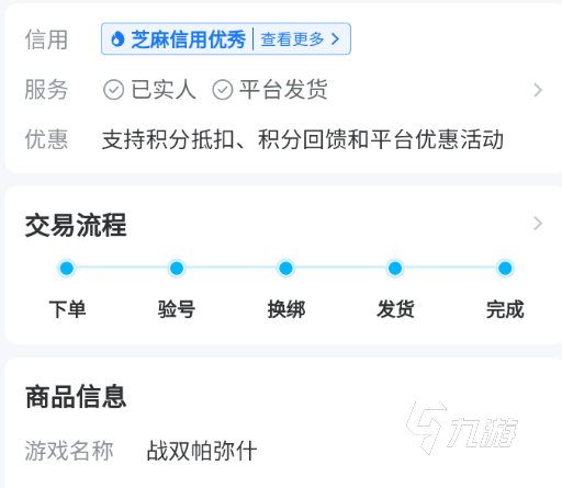 基本上只要是通過(guò)實(shí)名上架了賬號(hào)的賣(mài)家,在他的賬號(hào)界面都是能看到其信用等級(jí)的,從上圖隨便找到的這個(gè)商品主頁(yè)來(lái)看,平臺(tái)上的賣(mài)家是普遍信用較高的,再配上十分規(guī)范的五步交易流程,您會(huì)在這其中省去大量的時(shí)間和精力消耗,而且由于其中的每個(gè)環(huán)節(jié)基本上都會(huì)有客服引導(dǎo),所以即便是第一次買(mǎi)號(hào),也能得到最大程度的便捷。