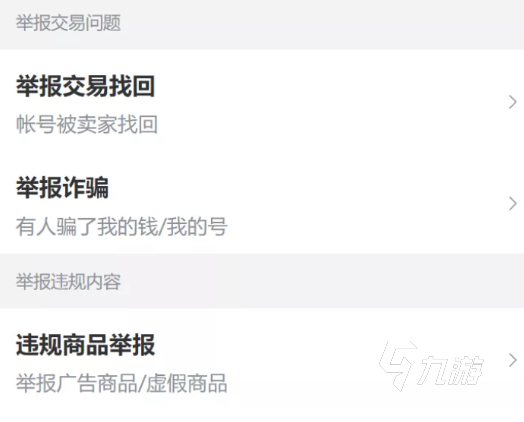 由于現(xiàn)在一些賣(mài)家會(huì)存在交易后找回的行為,所以交易平臺(tái)對(duì)售后板塊的設(shè)置是非常重要的,而交易貓上除了基本的售后客服提供專(zhuān)業(yè)咨詢(xún)以外,還可以利用舉報(bào)功能對(duì)自己的問(wèn)題進(jìn)行快捷上報(bào),舉報(bào)板塊中,包括賬號(hào)找回,騙錢(qián)騙號(hào),亦或是違規(guī)賬號(hào)都設(shè)置了對(duì)應(yīng)版塊,如果有什么問(wèn)題都可以及時(shí)舉報(bào)處理。
