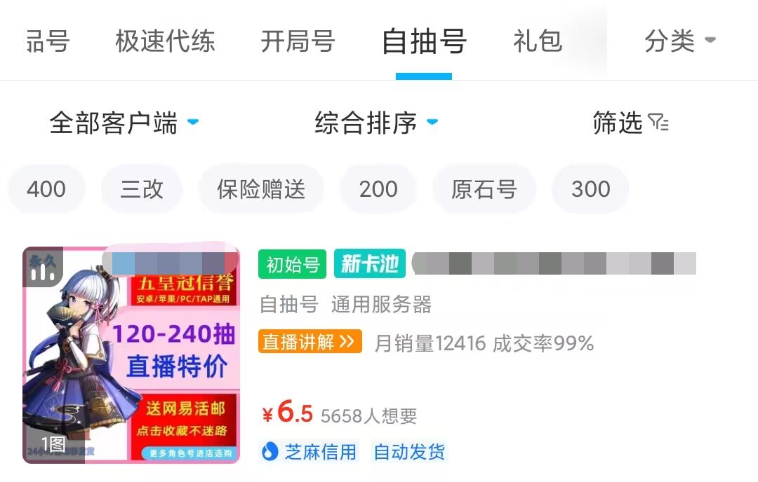原神自抽號一般多少錢 原神自抽號賬號交易平臺網(wǎng)址分享