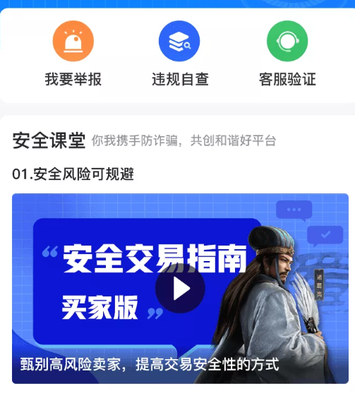 交易貓對(duì)于售后這塊是十分看重的,除了直接聯(lián)系客服以外,大家還可以通過(guò)點(diǎn)擊“安全中心”進(jìn)入其中進(jìn)行舉報(bào),舉報(bào)頁(yè)面涵蓋了被騙錢,被騙號(hào)或異常商品等問(wèn)題的受理,在里面大家只需要填寫一些情況,申請(qǐng)就會(huì)被迅速遞交,用不了多久即可被客服受理。而且這里面的安全課堂也是十分強(qiáng)大的,其中會(huì)警示小伙伴們?cè)S多常見(jiàn)的問(wèn)題,從而提前規(guī)避風(fēng)險(xiǎn)。