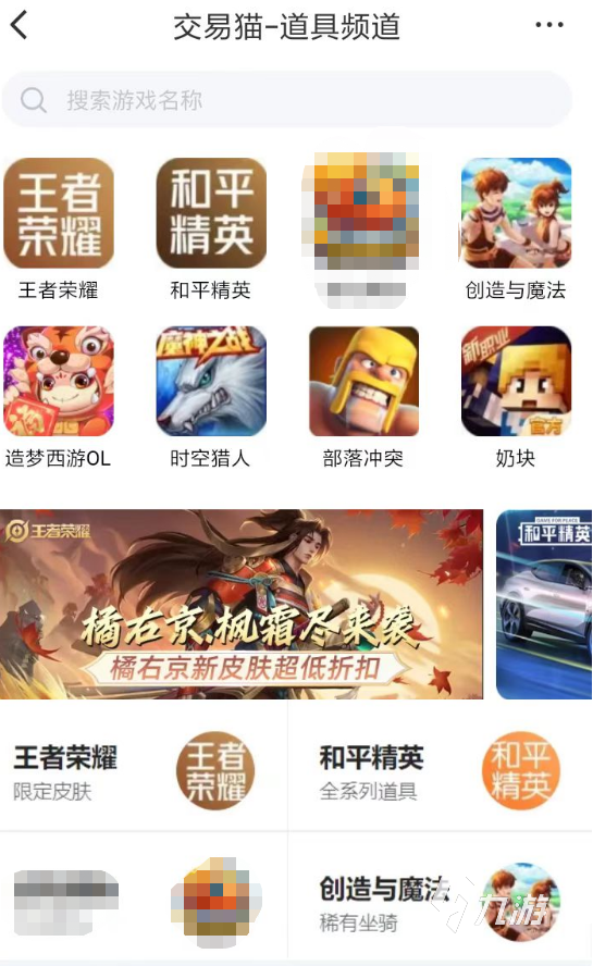 3、如果玩家們的交易目的是打算獲取游戲當(dāng)中的各種稀有道具,那么交易貓app當(dāng)中也專門搭建了進行道具出售的專區(qū)。玩家們在這里同樣可以快速找到自己滿意的內(nèi)容,各大熱門游戲或者冷門游戲的專區(qū)都可以快速通過搜索來實現(xiàn)。