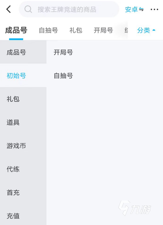 2、當(dāng)然,不是每一個玩家都想去購買一個已經(jīng)十分完善的游戲賬號,對于喜歡挑戰(zhàn)的玩家而言,購買一個初始號也是非常不錯的選擇。大家可以直接在專區(qū)當(dāng)中,通過分類功能來篩選出初始號的內(nèi)容,這樣就可以讓玩家在瀏覽的過程當(dāng)中更精準(zhǔn)的了解到自己喜歡的賬號類型。