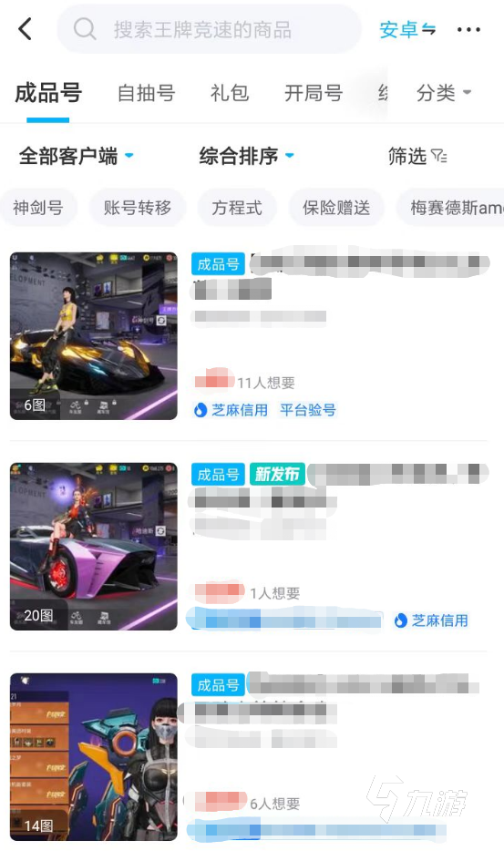1、在交易區(qū)當(dāng)中,玩家們將查看到各種成品號的出售信息,這些游戲賬號都有一個最大的特點,那就是賬號內(nèi)包含了大量高級車輛以及各種酷炫的皮膚。這也是玩家們在購買的過程當(dāng)中需要了解的核心內(nèi)容,因此這一類游戲號也會為玩家們帶來更棒的游戲體驗。