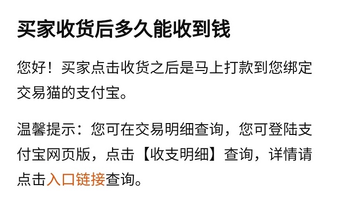 在交易貓上架商品之后能夠通過多種途徑快速將其賣出,比較推薦的方法是購買交易保險,不僅可以為我們的賬號和財產(chǎn)提供安全保障,而且買家也會更加傾向于去購買帶有保險的商品。在買家成功付款并且確認收貨之后,款項就會很快地直接打入我們的支付寶賬號中,免去了一些繁雜的操作,而且我們還能夠通過收支明細去查詢具體的款項去向,做到了公開透明又快速。