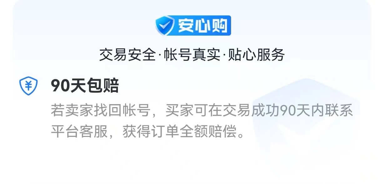 安心購是一項(xiàng)交易貓平臺(tái)推出的保險(xiǎn)服務(wù),這個(gè)保險(xiǎn)只針對(duì)虛擬賬號(hào)交易,是平臺(tái)和螞蟻保公司合作推出安全性有保障。滿足平臺(tái)標(biāo)準(zhǔn)的商品都可以支持參保,賣家上架商品時(shí)可選,買家下單時(shí)也可以選,總之雙方只需要一人參保即可,建議買家選擇送安心購保險(xiǎn)的商品,這樣不僅有了安全感,保費(fèi)也由賣家承擔(dān)。