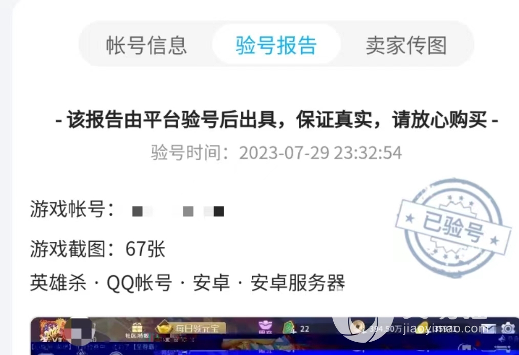 在交易貓上進(jìn)行游戲的搜索就能看到相關(guān)的游戲賬號信息,如果說對于賬號內(nèi)卡牌信息有懷疑,那么建議可以選擇帶有“驗號”標(biāo)識的商品信息,點擊商品的詳情頁內(nèi)可以看到平臺提供的驗號報告,這份報告證明了賣家上傳的信息內(nèi)容是真實可信的。同時平臺還有提供“永久包賠”的服務(wù)內(nèi)容,只要是在交易貓上完成的交易,只要賬號被找回來平臺會承擔(dān)賣家的交易損失。