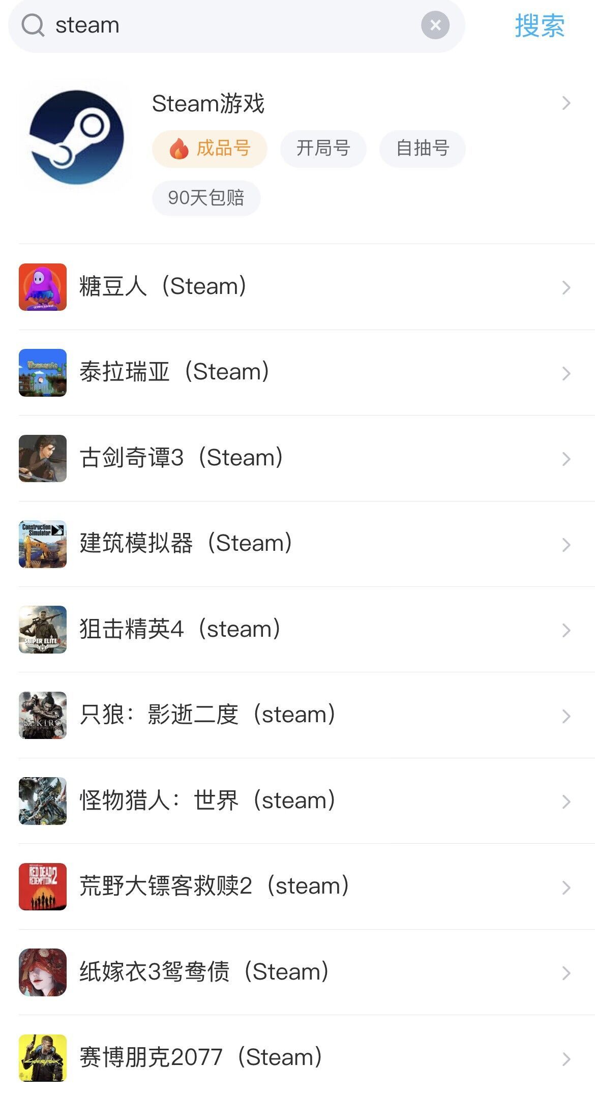 作為多年?duì)I經(jīng)驗(yàn)的交易貓來(lái)講,收獲了很多的忠實(shí)用戶,每天都會(huì)有很多的活躍用戶在這里交易,下載登錄之前你必須要提交芝麻信用的積分,然后完成實(shí)名認(rèn)證了之后才可以繼續(xù)后邊的服務(wù)和操作,如此安全措施讓騙子無(wú)處可入。進(jìn)入主頁(yè)直接搜索steam關(guān)鍵詞就會(huì)為你檢索出該平臺(tái)的各種游戲相關(guān)商品。