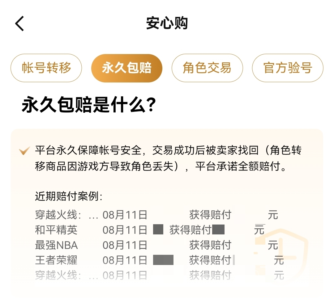 此外交易貓還提供官方驗號和永久包賠服務(wù),只要購買帶有這兩個標(biāo)簽的商品,即可享受對應(yīng)服務(wù)。驗號報告由第三方機(jī)構(gòu)提供,十分詳細(xì),通過報告買方將全方位地了解帳號情況。如果不幸遇上了黑心賣家把帳號找回了,不用擔(dān)心,你不會有任何財產(chǎn)損失,由平臺全額賠付。