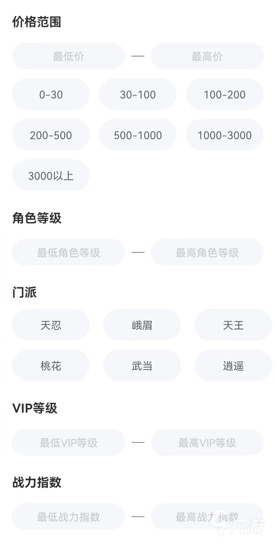 在這里進(jìn)行賬號(hào)內(nèi)容的瀏覽,可以看到非常精細(xì)的展現(xiàn),詳情中所在服務(wù)器、角色等級(jí)和門派以及VIP等級(jí)、戰(zhàn)力指數(shù)等非常清晰一目了然,而且商品數(shù)量非常多,有充分的挑選機(jī)會(huì)。當(dāng)然面對(duì)這樣多的商品也會(huì)帶來(lái)選擇上的問(wèn)題,為了解決這一點(diǎn),平臺(tái)推出了強(qiáng)大的篩選服務(wù),可以進(jìn)行價(jià)格、服務(wù)保障、角色等級(jí),門派、VIP等級(jí)、戰(zhàn)力指數(shù)等多項(xiàng)篩選,根據(jù)需要的內(nèi)容逐步填寫上,然后點(diǎn)擊確定,就可以在茫茫多的商品里將最需要的那一小部分找出來(lái)。接下來(lái)就可以進(jìn)行更細(xì)致的查看,直到確定自己需要的類型。