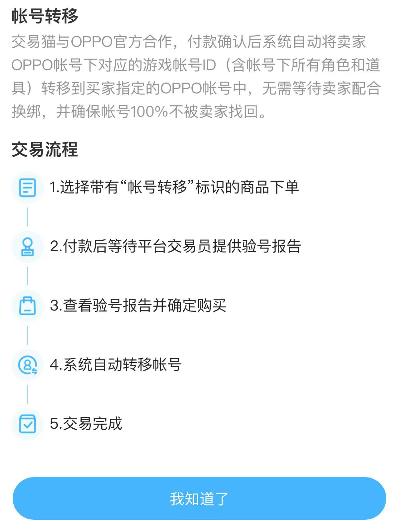 有的朋友游戲賬號綁定其他社交媒體的號,如果一并賣出的話,會浪費(fèi)其他游戲號。該平臺部分游戲支持出售渠道號,例如OPPO渠道就支持賬號轉(zhuǎn)移功能,在交易貓里,你不需要出售整個賬號,只需要將其中的游戲數(shù)據(jù)直接轉(zhuǎn)移給其他人就可以完成交易。這樣就能增加買家的信任度,還能夠避免浪費(fèi)賬號里其他角色資源。