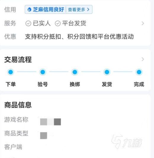 3、誠信交易。賣家通過實名認(rèn)證、芝麻信用認(rèn)證等,才能夠發(fā)布商品信息。交易貓平臺整個交易流程規(guī)范化,從買家確認(rèn)意向下單開始,支付錢款給平臺,客服驗號,買家換綁賬號安全信息,雙方交易結(jié)束。