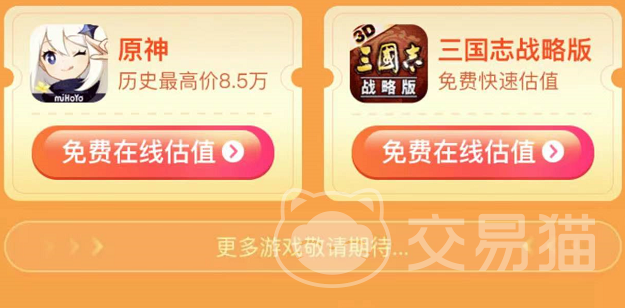 以上就是游戲號估價平臺推薦的全部內(nèi)容介紹了,看完之后大家也知道估計平臺怎么選了吧,總的來說,就是大家有賬號估價等游戲服務(wù)方面的問題,都可以在交易貓上得到解決。