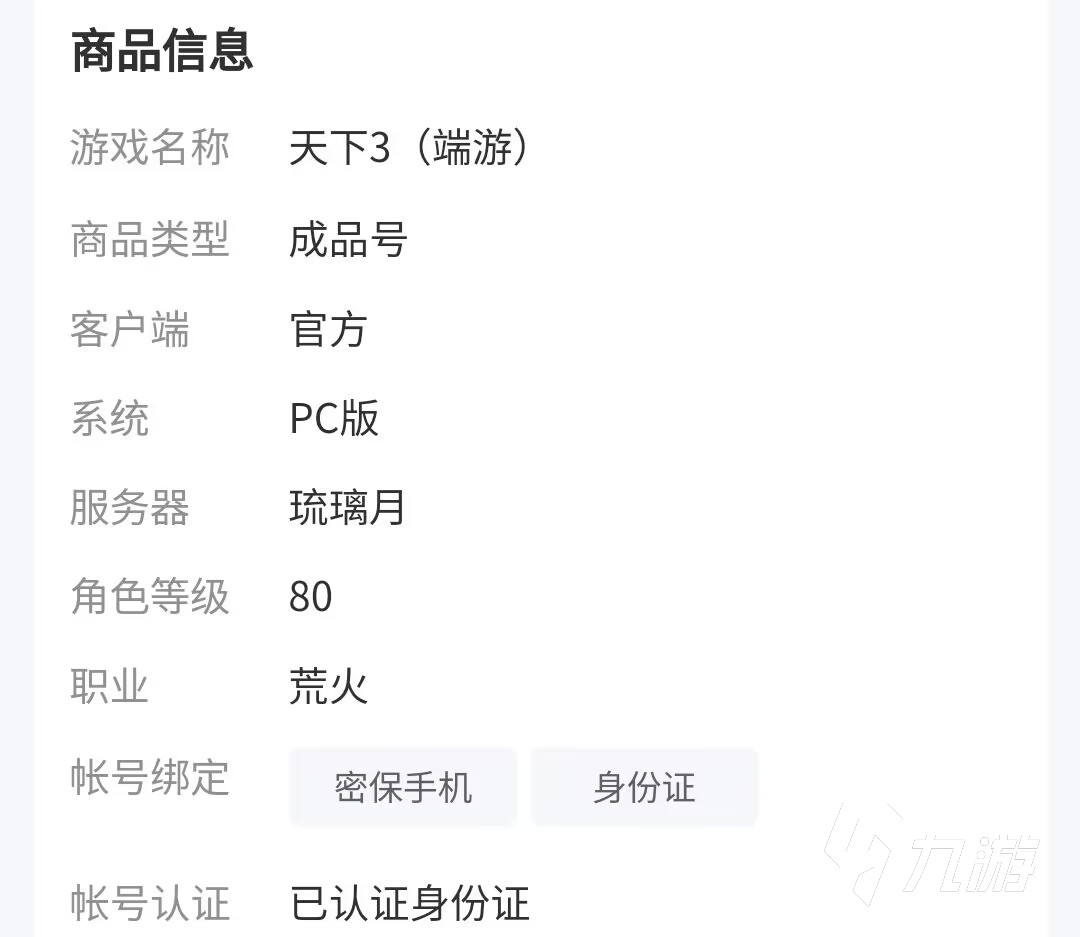 就拿針對這款天下三端游賬號交易來說,交易貓都貼心的為交易雙方準備出來了一個信息模板,買家們可以很清晰的對比出來不同賬號的角色等級和職業(yè),甚至連網(wǎng)易賬號的綁定手機和身份證情況都要求賣家一五一十的展示出來,避免在后續(xù)的換綁過程中賣家有找回賬號的嫌疑和動機;在游戲方面的各種信息大多數(shù)都可以靠截圖來了解,實在有哪方面不懂直接與賣家私聊即可。