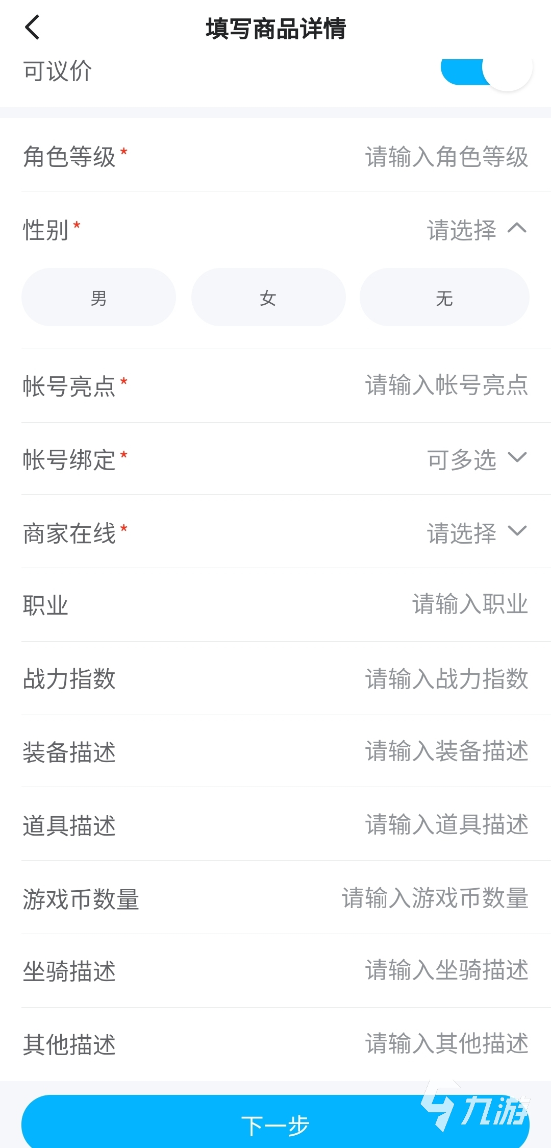 上架前還需對賬號作一個(gè)全面的介紹,交易貓APP有專門的斗羅大陸手游賬號的描述模板,該介紹哪些項(xiàng)已經(jīng)給你列好了,你只需依據(jù)實(shí)際填好。上傳游戲截圖盡量展示全面一些,更容易買家的注意力并促成最終成交。