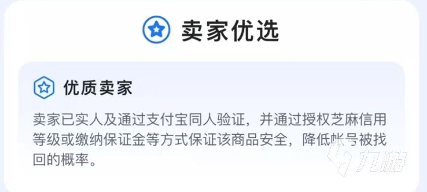 平臺(tái)內(nèi)還有優(yōu)質(zhì)賣(mài)家標(biāo)簽,擁有此標(biāo)簽以后賣(mài)號(hào)會(huì)變的更方便,如何成為這個(gè)標(biāo)簽的擁有者呢?賣(mài)家只需要通過(guò)支付寶同人驗(yàn)證,通過(guò)信用等級(jí)或繳納保證金的方式成為優(yōu)質(zhì)賣(mài)家,買(mǎi)家看到后會(huì)優(yōu)先選擇優(yōu)質(zhì)賣(mài)家進(jìn)行賬號(hào)購(gòu)買(mǎi)。