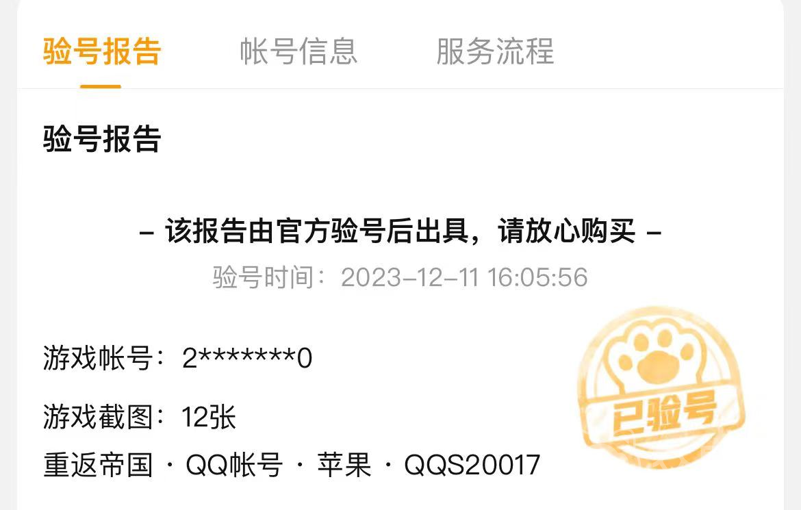 為了確保大家買到真實(shí)的賬號(hào),平臺(tái)會(huì)先對(duì)一些賬號(hào)進(jìn)行驗(yàn)證,這些賬號(hào)驗(yàn)證過關(guān)就能獲得驗(yàn)號(hào)報(bào)告,用戶通過驗(yàn)證報(bào)告來了解賬號(hào)里有哪些英雄和道具,下單的時(shí)候心中有數(shù)就不會(huì)被騙或者是買到假號(hào)了。