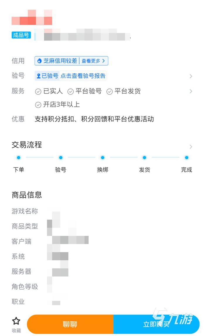在賬號交易的詳情頁我們可以看到賣家需要將賬號的基本信息、角色等級、職業(yè)、擁有的道具、時裝、寵物、武器等一一羅列出來。而交易貓平臺也是提供了非常權威的免費驗號服務,通過平臺驗號確保賬號內容的真實性,為買家解決后顧之憂。交易貓平臺與芝麻信用體系進行了聯動,我們可以直觀看到賣家以及買家的信用評價并且以此來判斷交易對象是否值得信任。