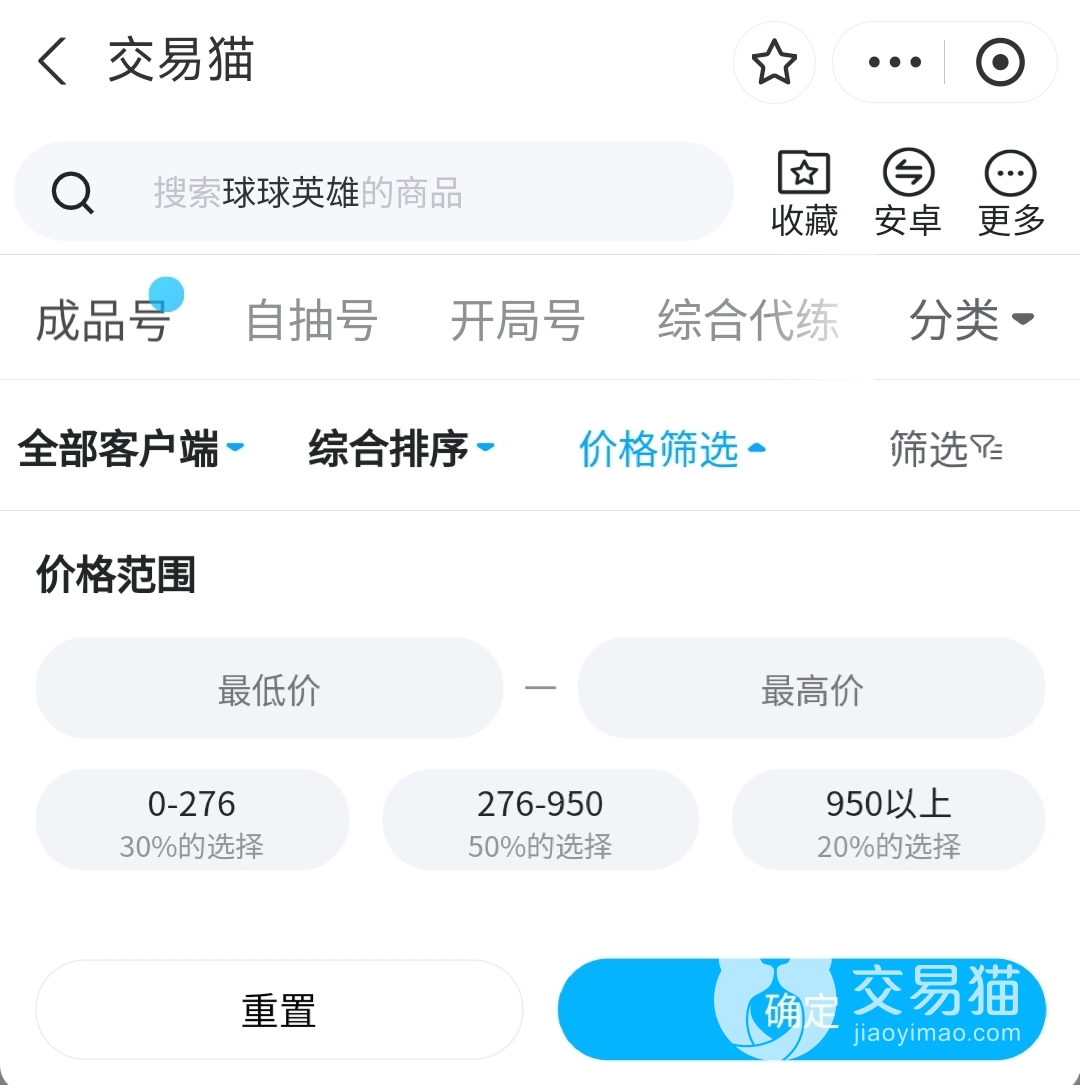 在交易貓上,球球英雄成品號(hào)的價(jià)格可以根據(jù)市場(chǎng)需求來(lái)定。通常在千元以內(nèi)的價(jià)格范圍內(nèi),是買(mǎi)家們需求量較高的。賬號(hào)的價(jià)值一般取決于賬號(hào)內(nèi)球球的類(lèi)型,如攻擊類(lèi)、防御類(lèi)、輔助類(lèi)等。一個(gè)在這個(gè)價(jià)格范圍內(nèi)的賬號(hào)通常會(huì)擁有上述類(lèi)型的球球,并且等級(jí)也不會(huì)太低。如果賬號(hào)里含有氪金類(lèi)專(zhuān)屬球球,那么價(jià)格可能會(huì)相應(yīng)高一些。賣(mài)家可以根據(jù)自己賬號(hào)中球球的類(lèi)型和等級(jí)來(lái)制定價(jià)格。記得在交易貓上搜索球球英雄成品號(hào)的價(jià)格范圍,以便更好地了解市場(chǎng)行情。
