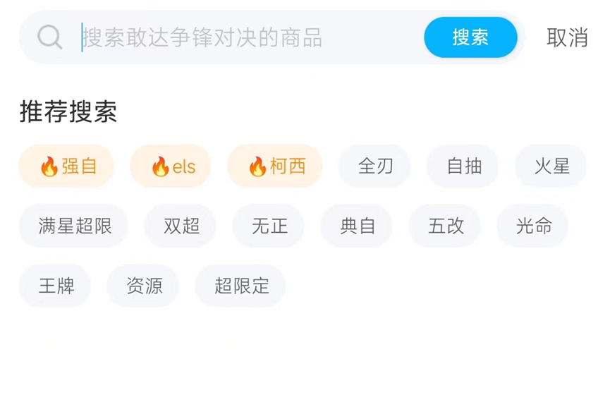交易貓了解到每一個玩家想要的賬號都是不一樣的,所以大家可以在敢達(dá)爭鋒對決交易板塊的搜索欄內(nèi)搜索想要的賬號,尤其是搜索推薦中帶有火焰樣式的關(guān)鍵詞,這都是跟多其他小伙伴們搜索關(guān)注過后,平臺根據(jù)搜索情況給大家推薦的。