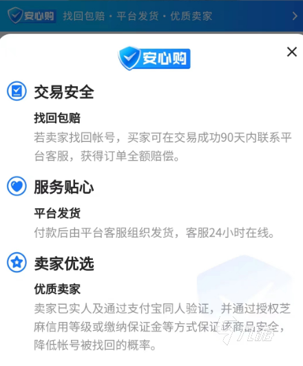 3、在交易貓當(dāng)中買號(hào)很安全。買號(hào)之前先別管性價(jià)比是否有多高,交易貓會(huì)為某些賬號(hào)免費(fèi)提供安心購,這個(gè)所謂的安心購大家也可理解為找回包賠,且每個(gè)在平臺(tái)里上架商品的用戶,都是需要進(jìn)行人臉識(shí)別和實(shí)名認(rèn)證的,個(gè)人賬號(hào)的芝麻信用分也會(huì)同步到平臺(tái)里。