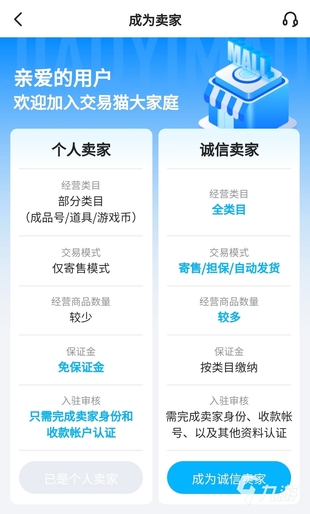 關于如何在交易貓上賣賬號,其實流程非常簡單。下載好交易貓app登錄以后(還沒有交易貓的朋友,點擊上面的按鈕即可獲?。?,自主選擇要成為“個人賣家”/“誠信賣家”,之后在主界面找到“我要賣”,搜索選中游戲后,按照提示填寫詳細商品信息,點擊發(fā)布即可,商品會在平臺審核通過后上架。