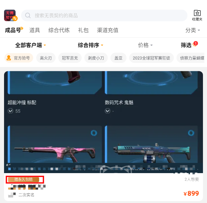作為一款槍戰(zhàn)競技游戲,在無畏契約中沒有會(huì)影響競技平衡性的氪金元素,大家主要是會(huì)買一些好看的槍皮,擊殺特效,以及季票,季票中一般也會(huì)包含一些限定的槍皮、頭像框、稱號(hào)等等。部分玩家如果錯(cuò)過了某個(gè)賽季的季票獎(jiǎng)勵(lì),特別想拿到這個(gè)槍皮就只能買個(gè)賬號(hào)了,交易貓app中就有許多這類的賬號(hào)。